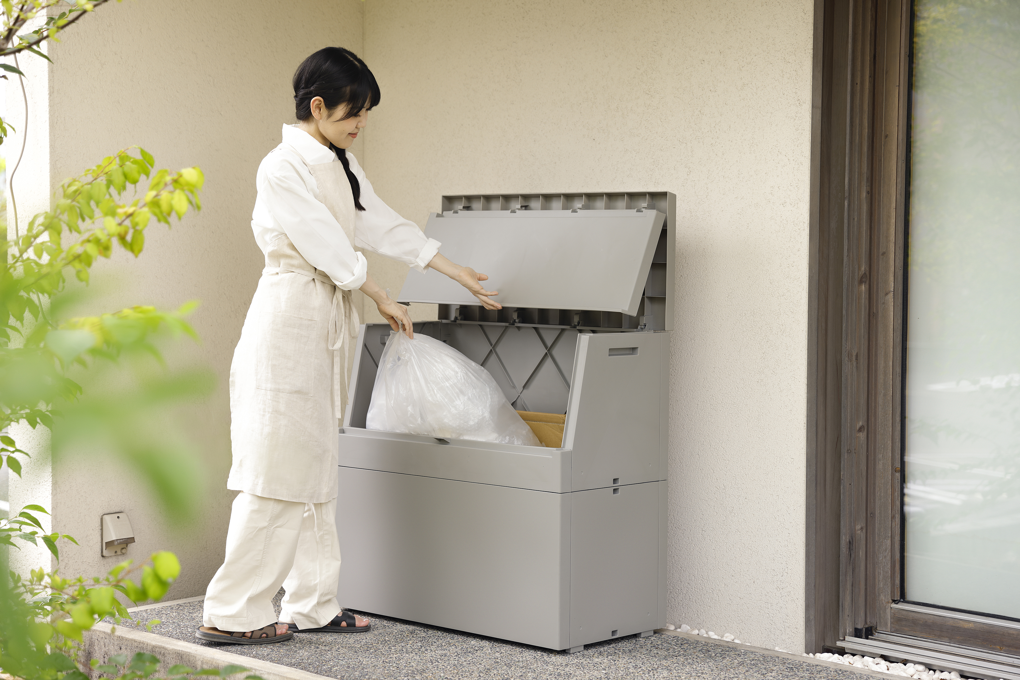 収集日までのゴミをひとまとめ。簡易物置や宅配ボックスとしても使える「SOLOW(ソロウ)出し入れがスムーズな屋外ストッカー」が登場