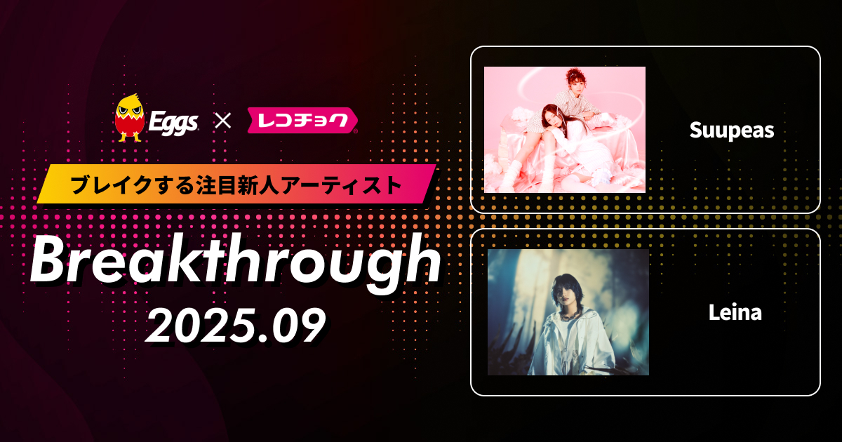 レコチョクが“ブレイクする注目新人アーティスト” 「Breakthrough」を発表!2025年9月は「Leina」とEggsで注目の「Suupeas」