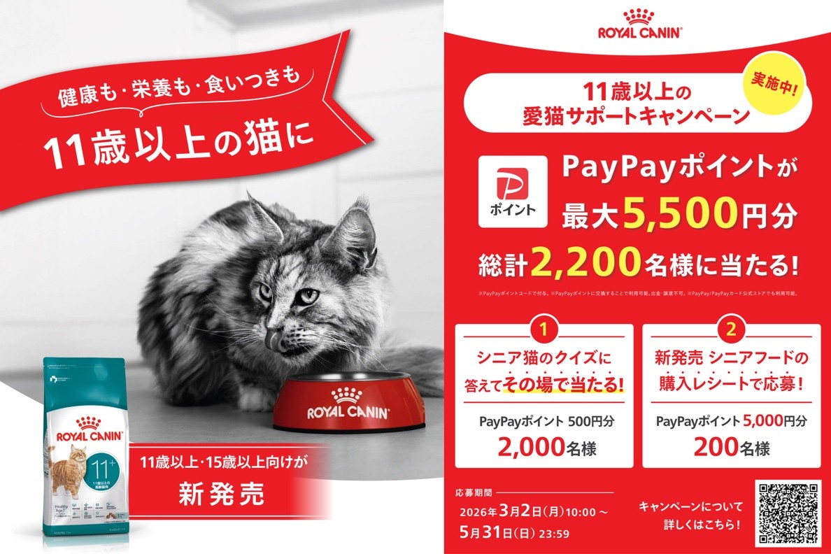 ロイヤルカナン、猫のライフステージに合わせた栄養バランスの大切さを知ってもらうためにシニア猫の栄養をケアするキャンペーン開始