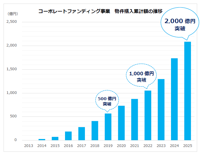 コーポレートファンディング事業における物件購入累計額2,000億円突破に関するお知らせ