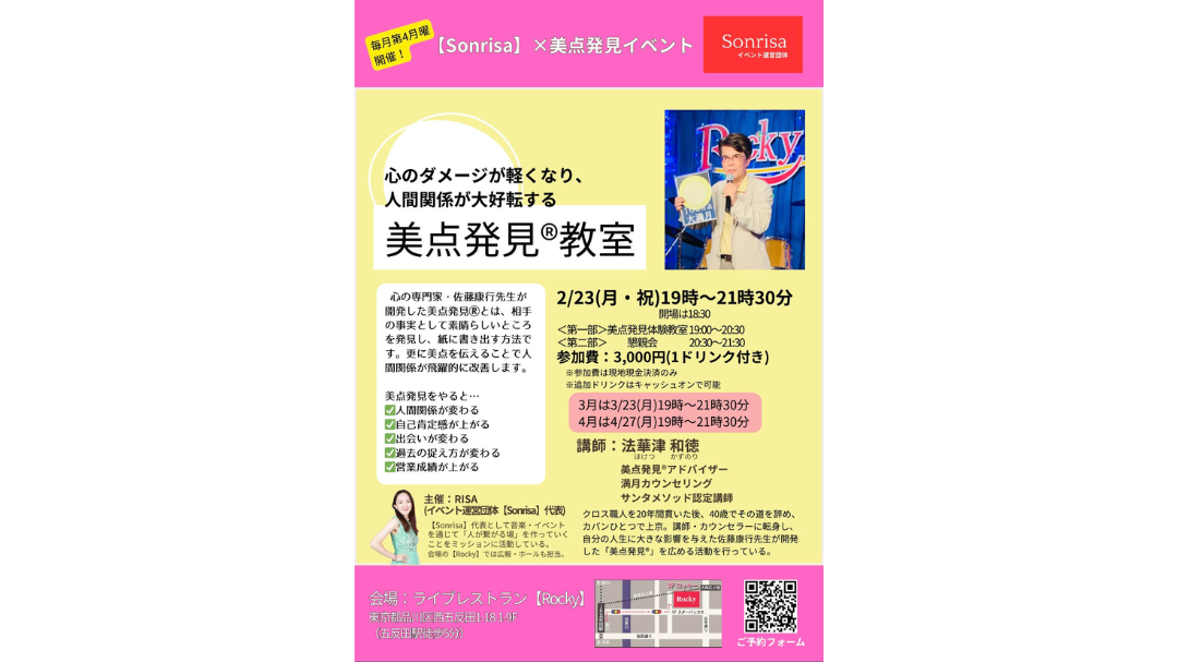 人間関係“大好転”メソッド「美点発見(R)︎教室」を2026年2月23日(月・祝)に五反田で開催