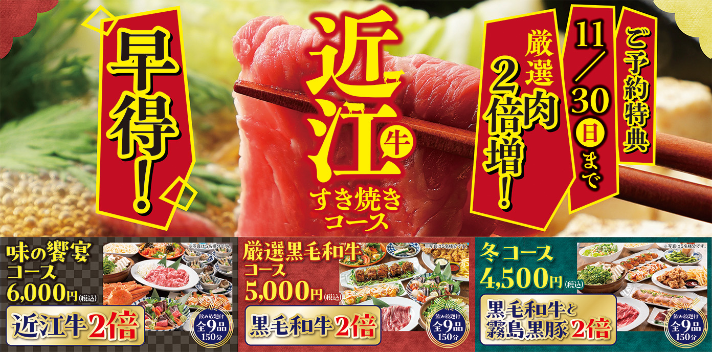 【三代目鳥メロ】黒毛和牛すき焼きや名古屋コーチンで「美味しさ」にこだわり抜いた忘年会向け特別宴会コース2種 10月1日より予約開始