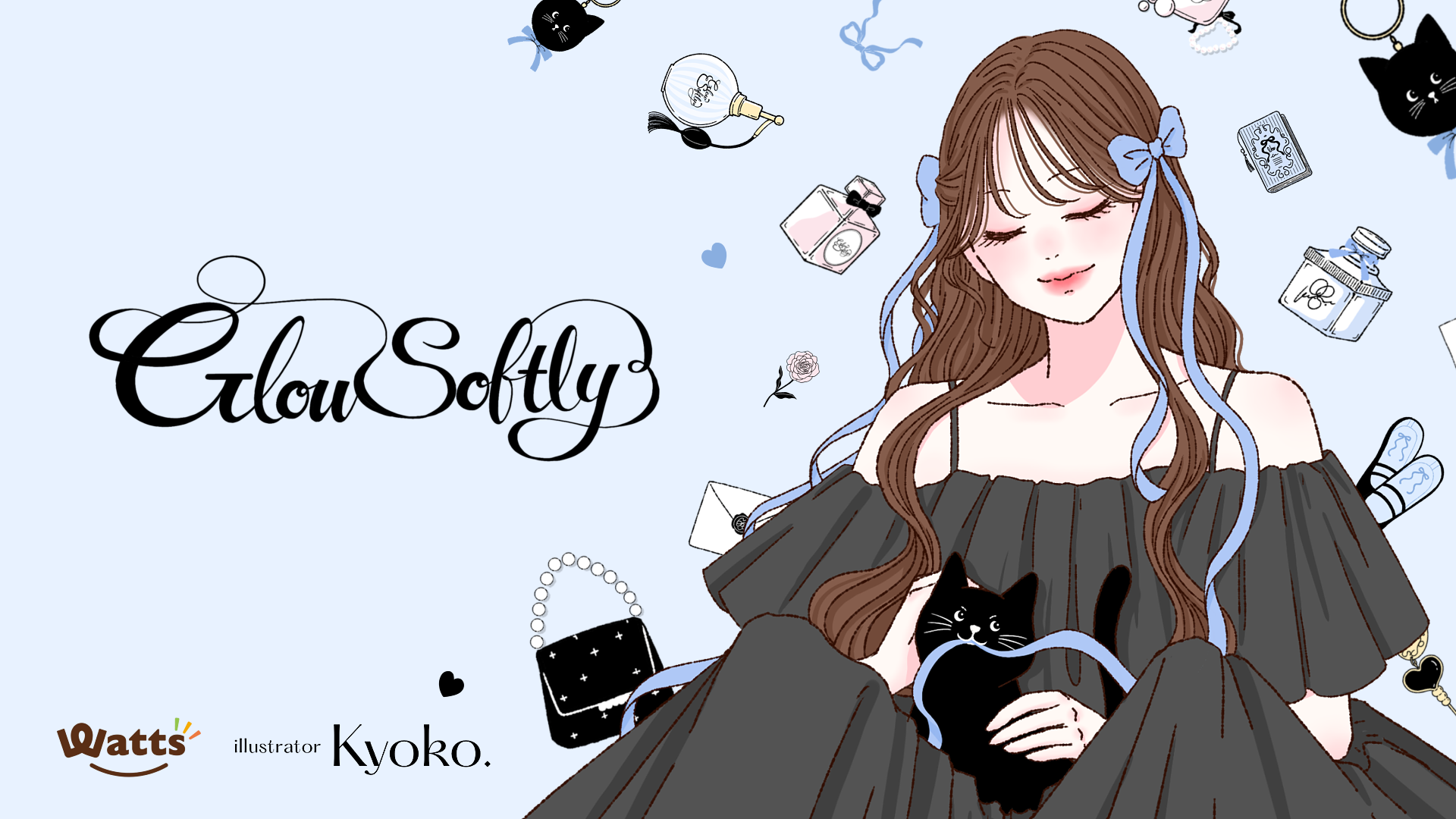 【ワッツ×人気イラストレーターKyoko.】“Glow Softly”をテーマに、大人可愛いプチプラアイテムが描きおろしコラボレーショングッズとして11月26日(水)より発売開始!