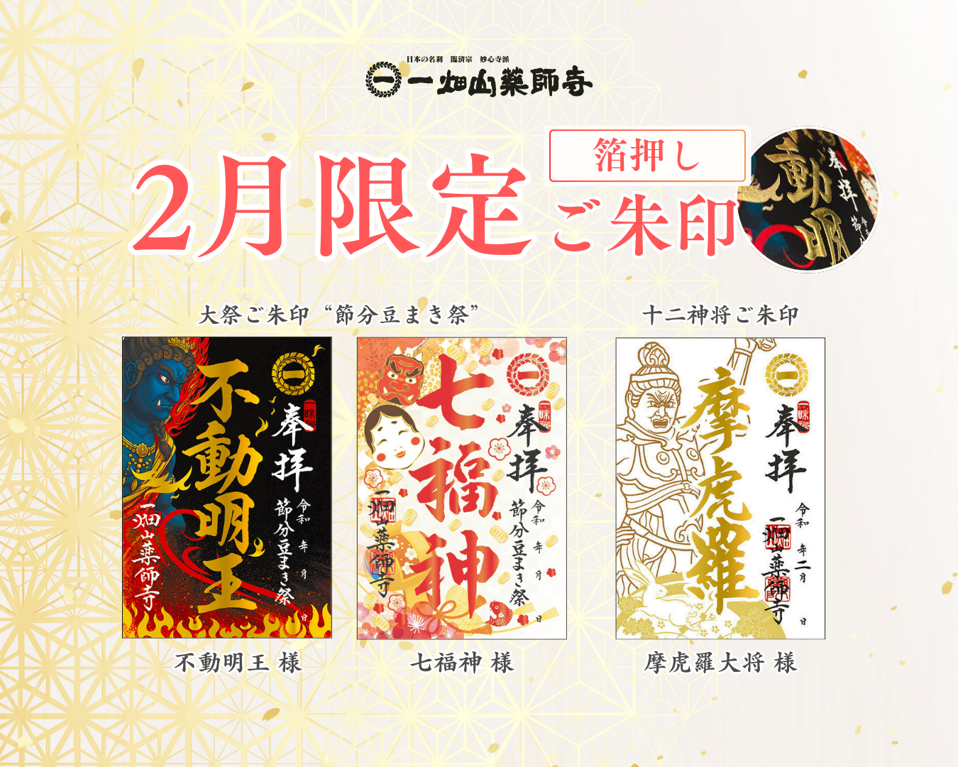 「金の箔押しが映える、月替わりの限定ご朱印」 2月限定「箔押しご朱印」を頒布開始【一畑山薬師寺】(PR TIMES ママ)