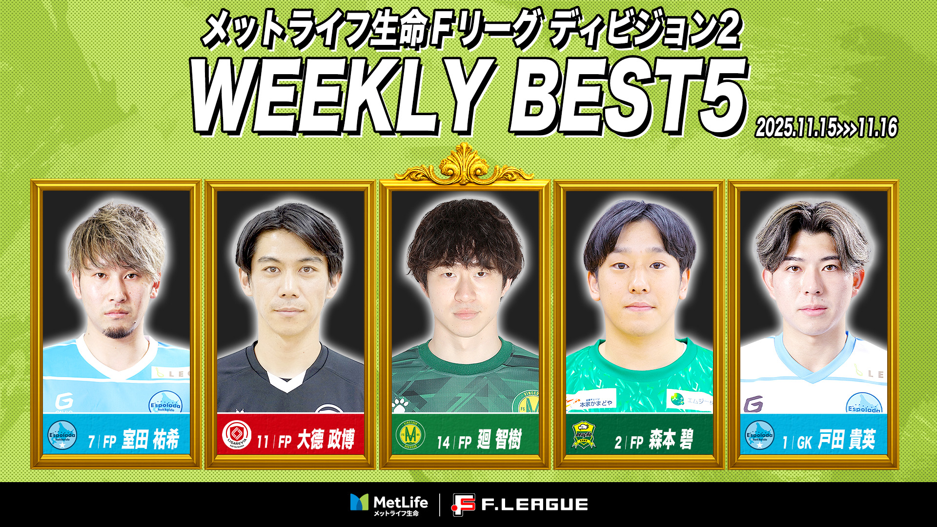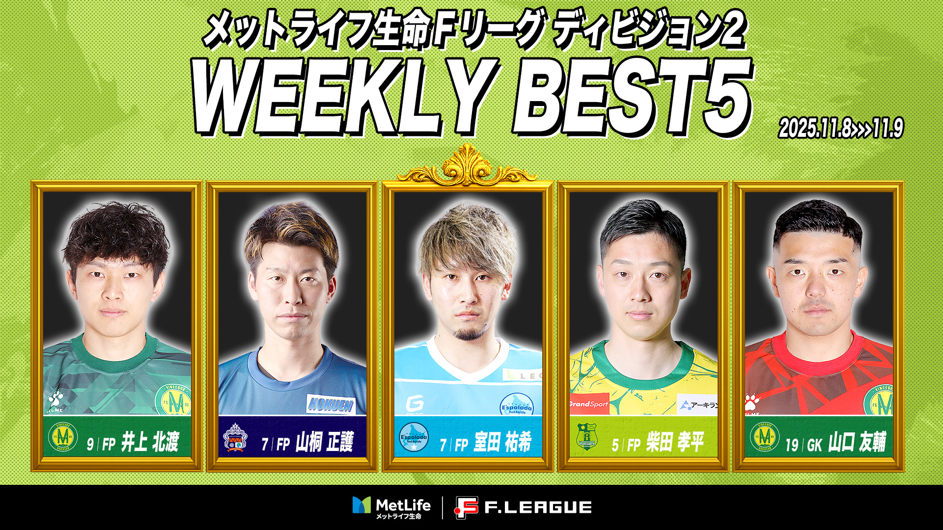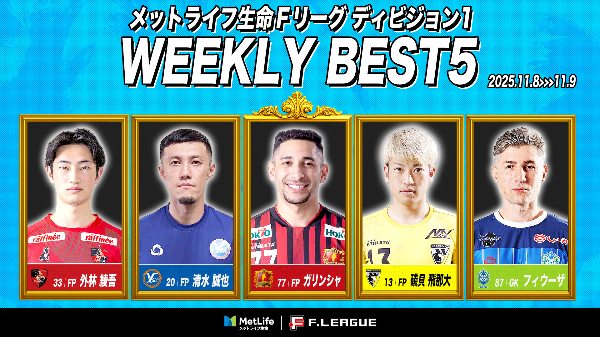 廻智樹(白山)が週間MVPに!第15節|2025年11月15日~11月16日 週間ベスト5【メットライフ生命Fリーグ2025-26 ディビジョン2】