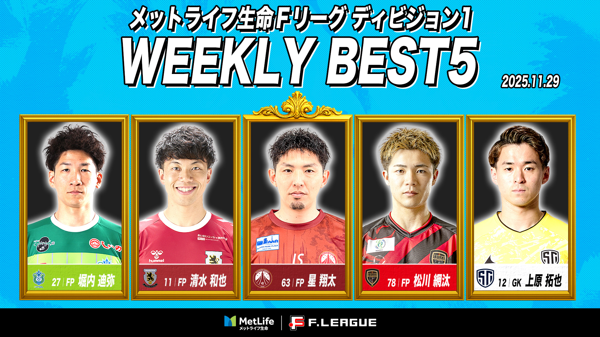 星翔太(フウガドールすみだ)がMVPに!第19節|2025年11月29日 週間ベスト5【メットライフ生命Fリーグ2025-26 ディビジョン1】