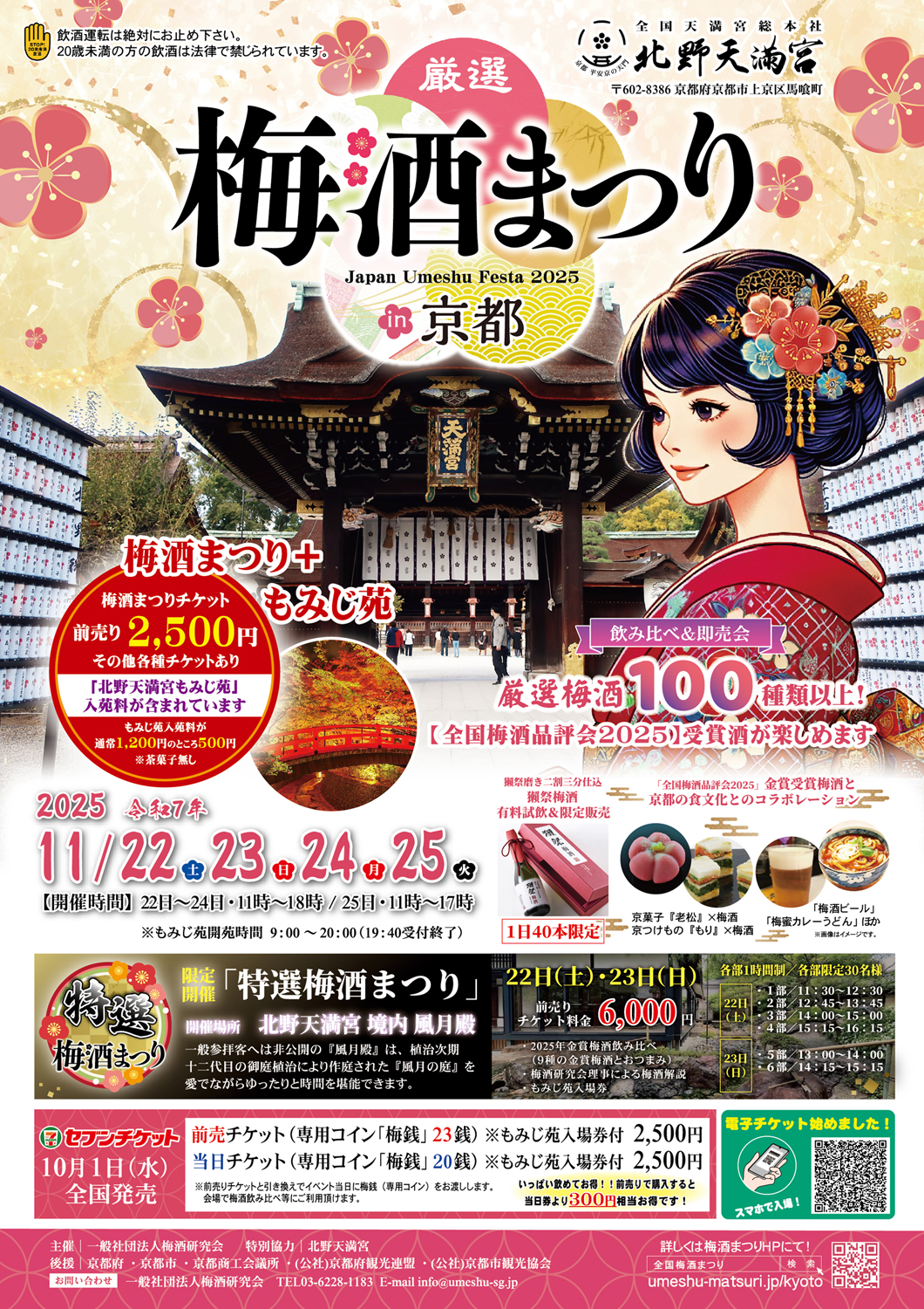 全国梅酒品評会2025 受賞酒を堪能!『厳選梅酒まつりin京都2025』北野天満宮で開催