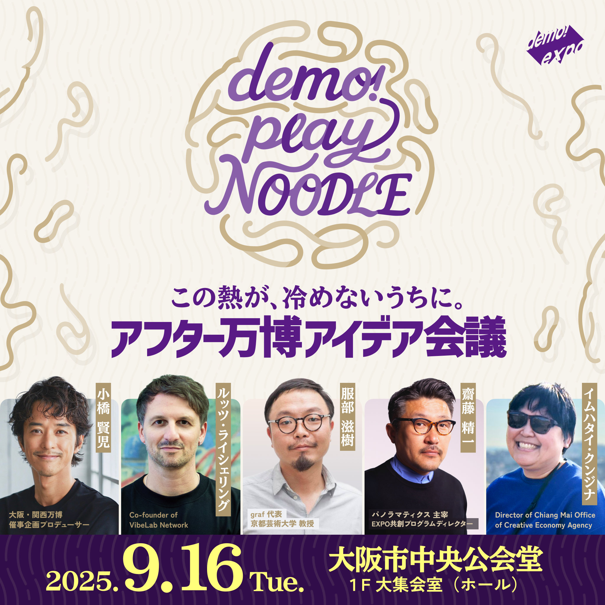 プログラム詳細が決定!都市と文化の“その先”を語るアフター万博アイデア会議「demo!play NOODLE」最新情報