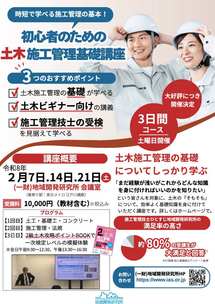 【必見!】初心者のための施工管理の基礎講座(土木コース・全3回】を令和8年2月に開講!