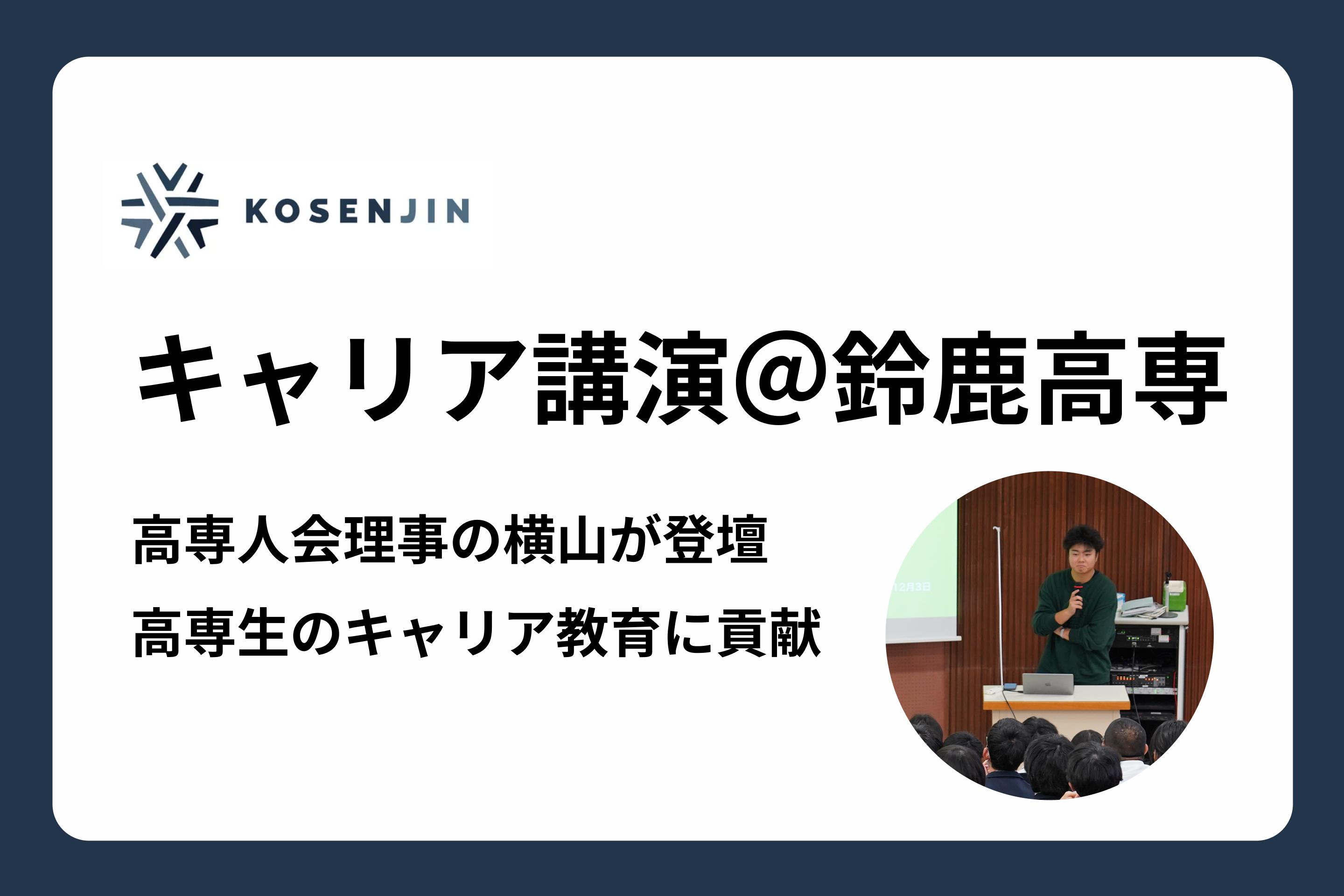 【開催報告】鈴鹿高専にて高専人会理事の横山がキャリア講演を開催。高専生のキャリア教育に貢献(PR TIMES ママ)