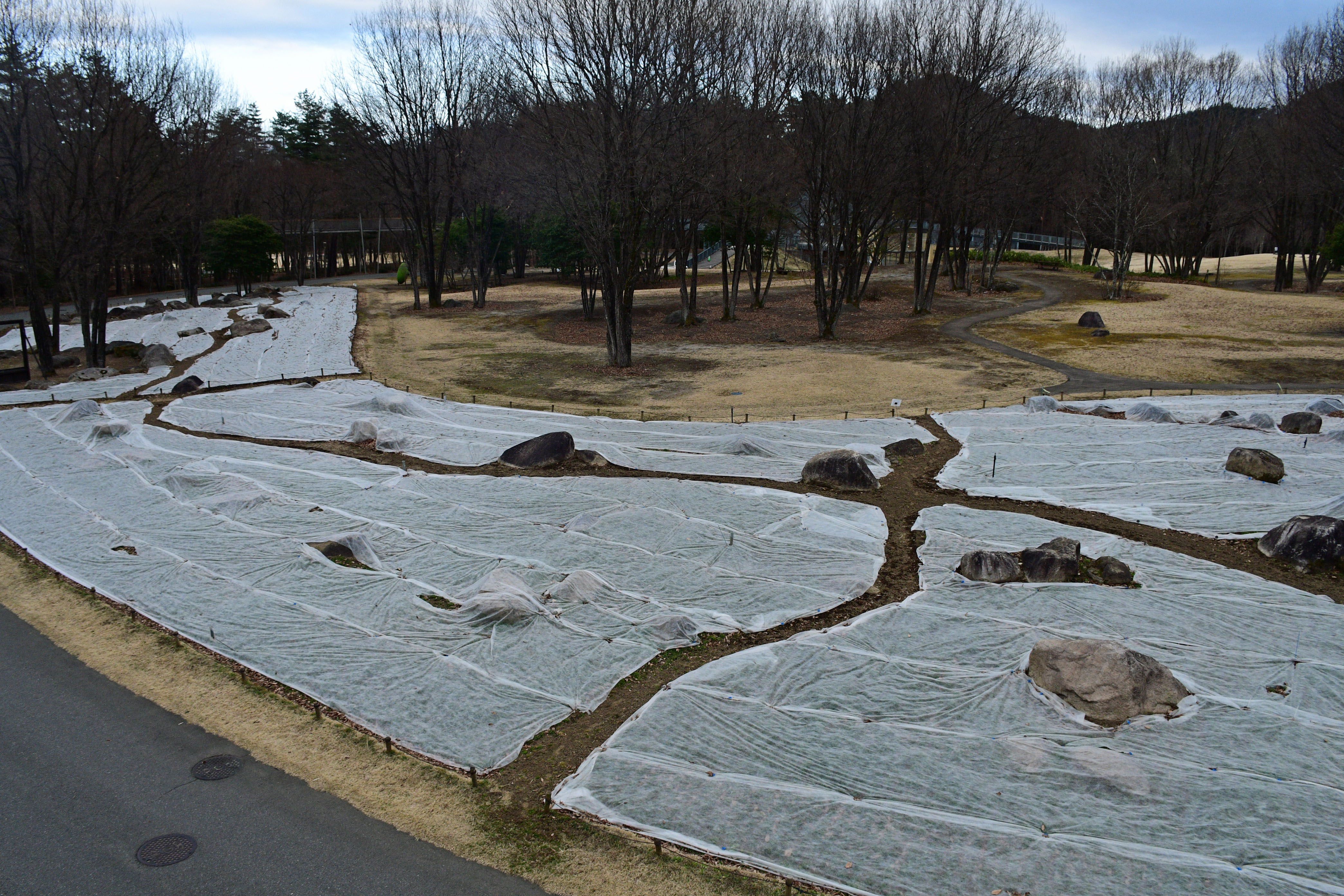 春を告げる作業開始「ネモフィラ」の霜よけシートを外します