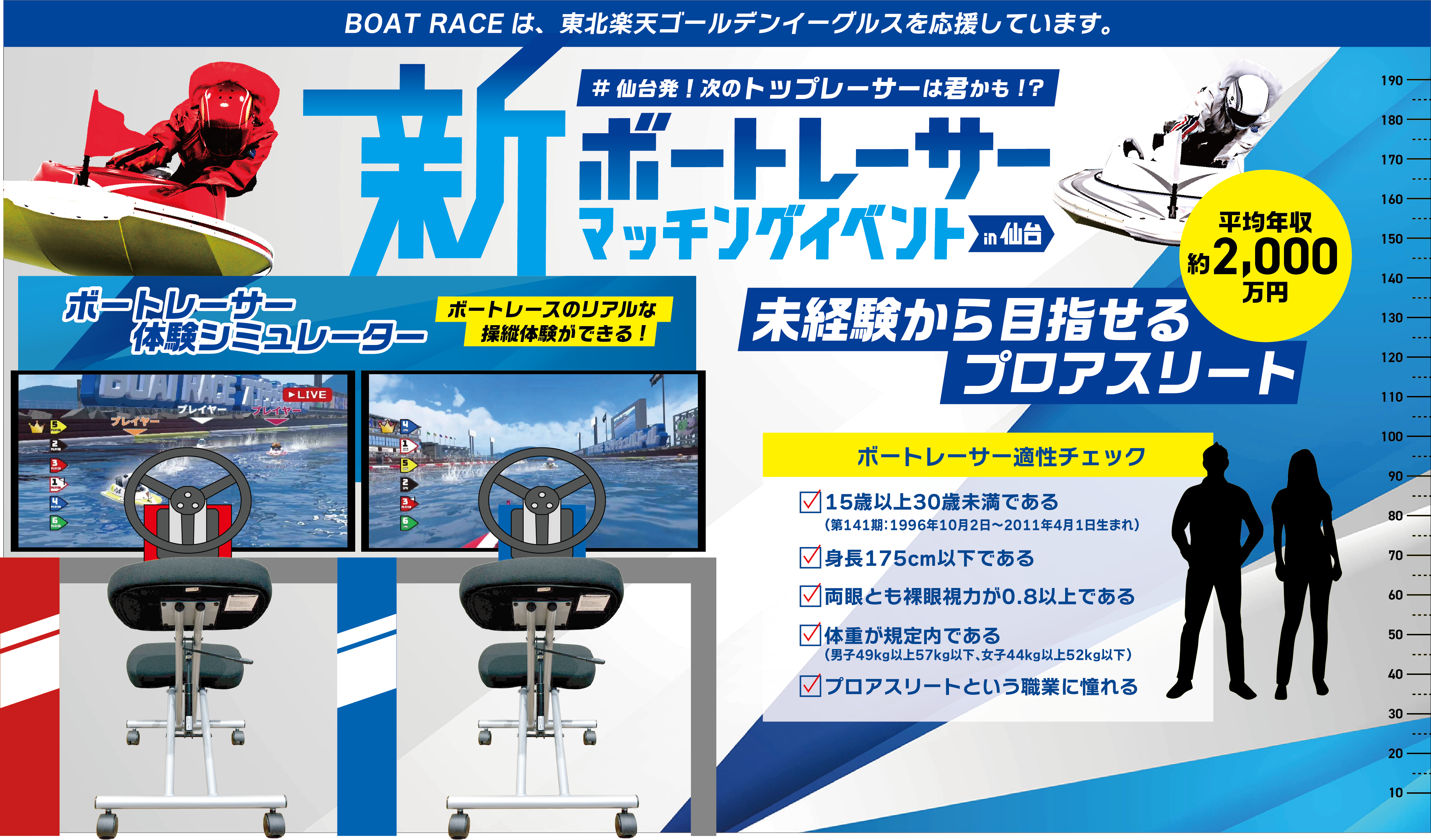 職業としてのボートレーサーの魅力を発信「新ボートレーサーマッチングイベント in仙台」を開催!~ボートレーサー体験アトラクション「スプラッシュバトル」が仙台に登場~