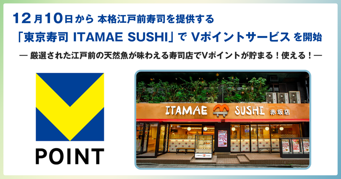 12月10日から本格江戸前寿司を提供する「東京寿司 ITAMAE SUSHI」でVポイントサービスを開始