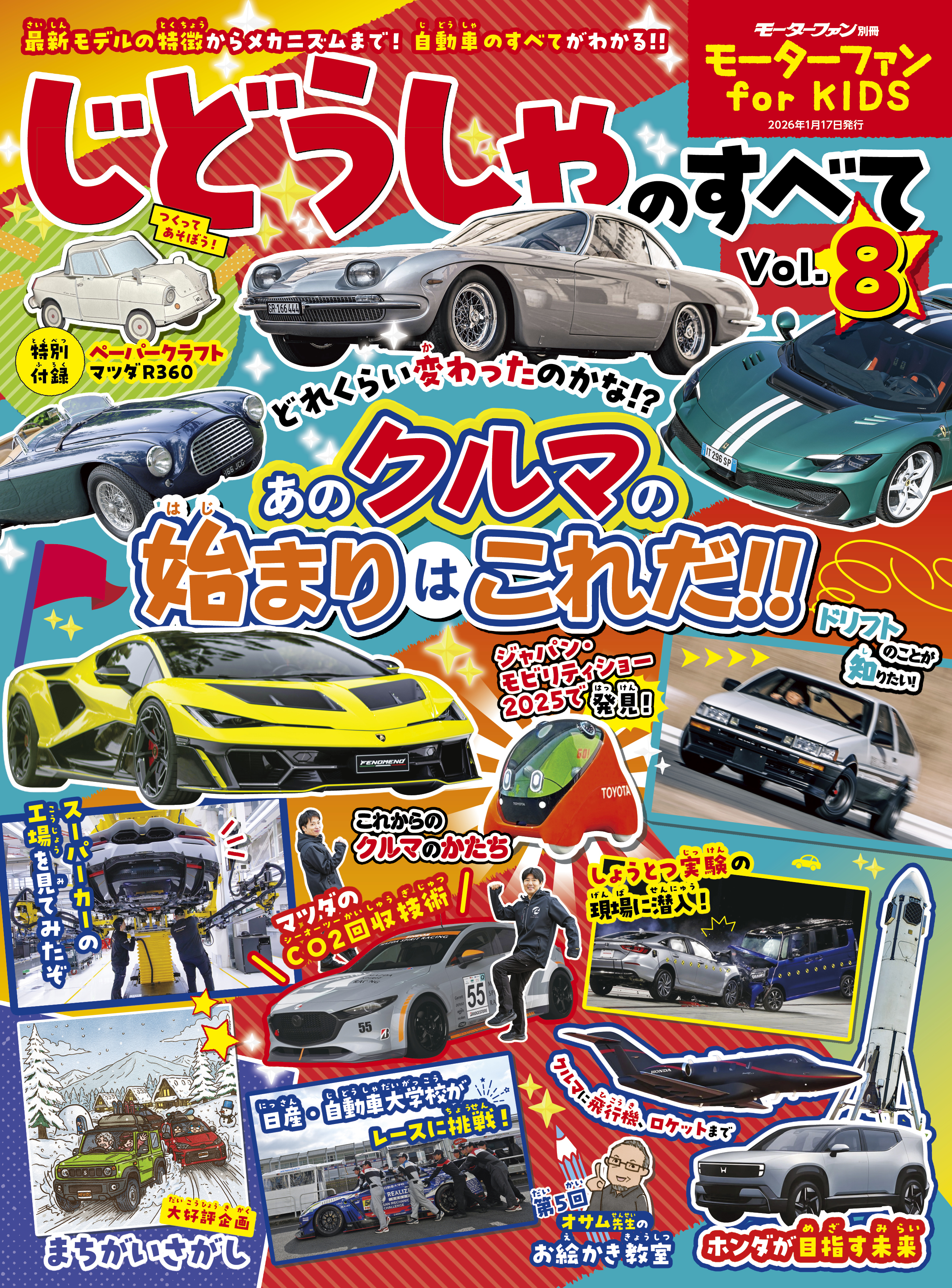 「モーターファン for KIDS じどうしゃのすべてVol.8」発売!特集:あのクルマの始まりはこれだ!!