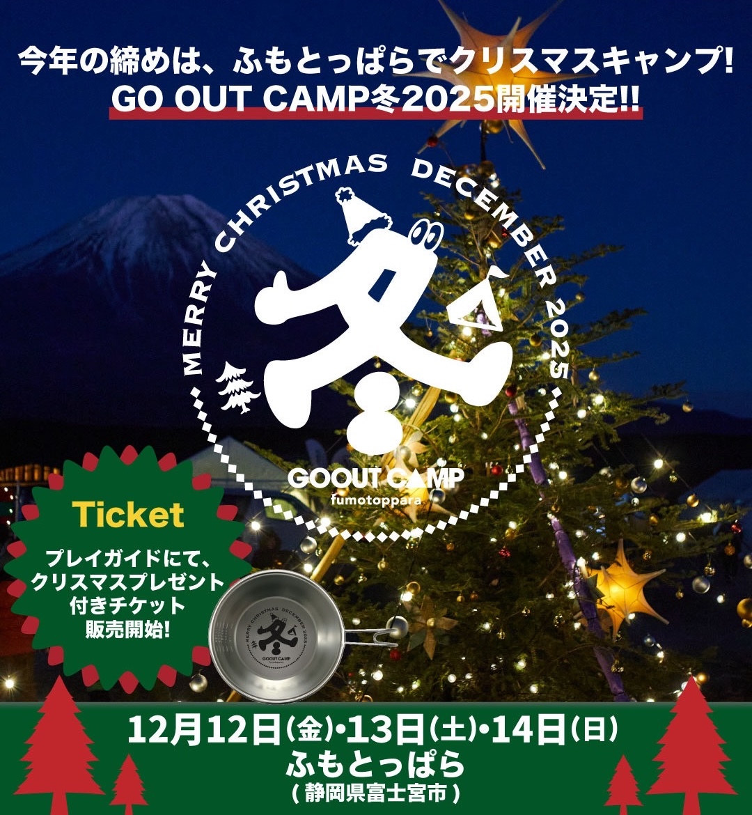 今年の締めは、ふもとっぱらでクリスマスキャンプ! GO OUT CAMP 冬 2025 チケット販売開始。