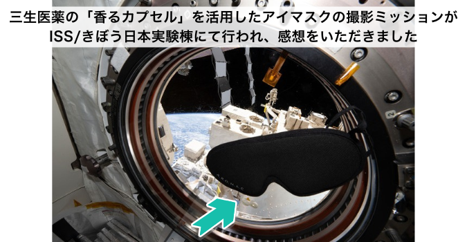 三生医薬の「香るカプセル」を活用したアイマスクの撮影ミッションがISS/きぼう日本実験棟にて行われ、感想をいただきました