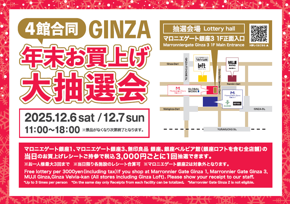 【マロニエゲート銀座1】12月6日(土)、12月7日(日)「4館合同 GINZA 年末お買上げ大抽選会」開催!