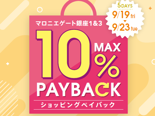 【マロニエゲート銀座1】9月19日(金)~9月23日(火・祝)まで「最大10%還元!ショッピングペイバック」開催!