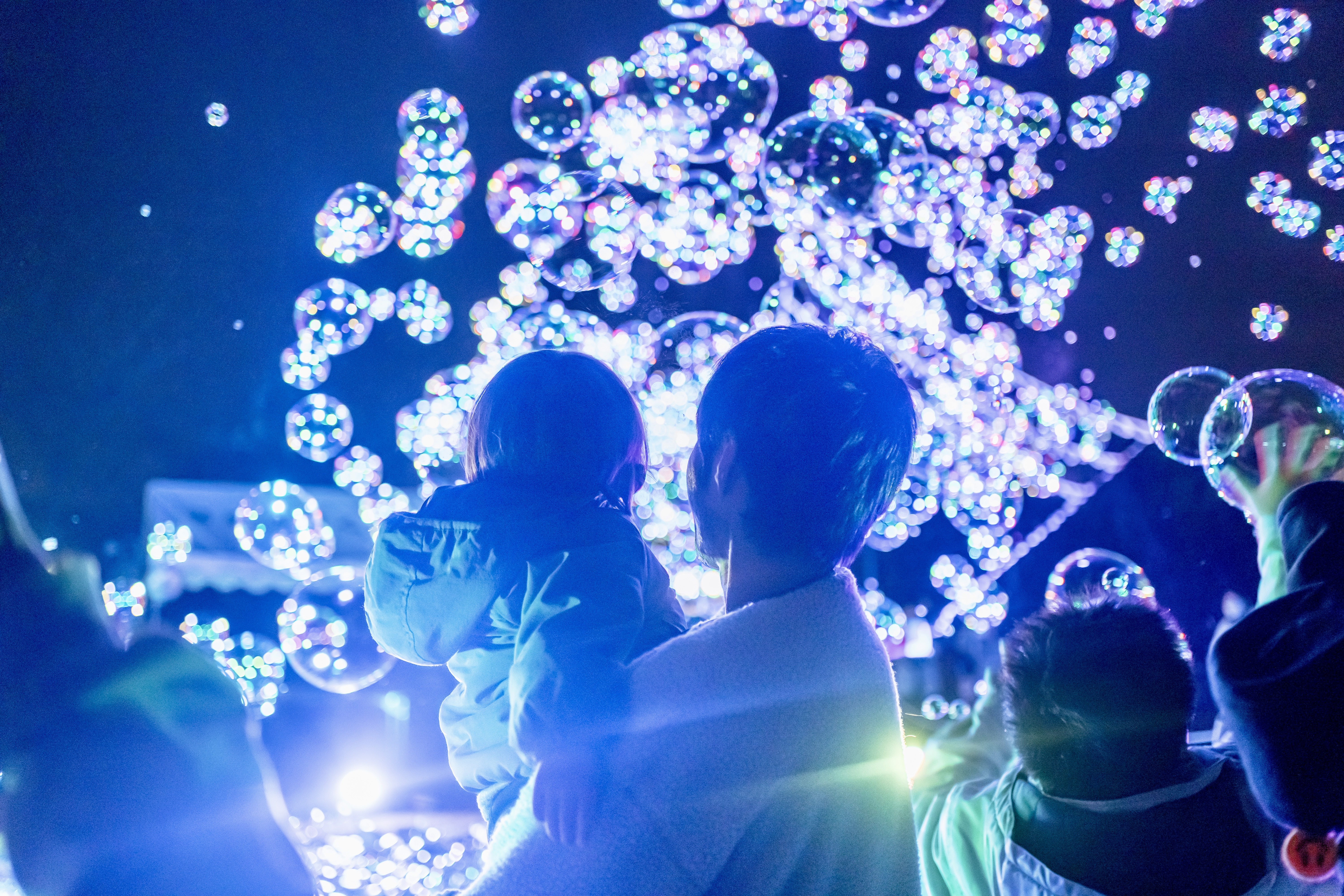 シャボン玉と光が織りなす幻想空間「ナイトバブル」開催 鳥栖アウトレットで楽しむ秋の非日常体験