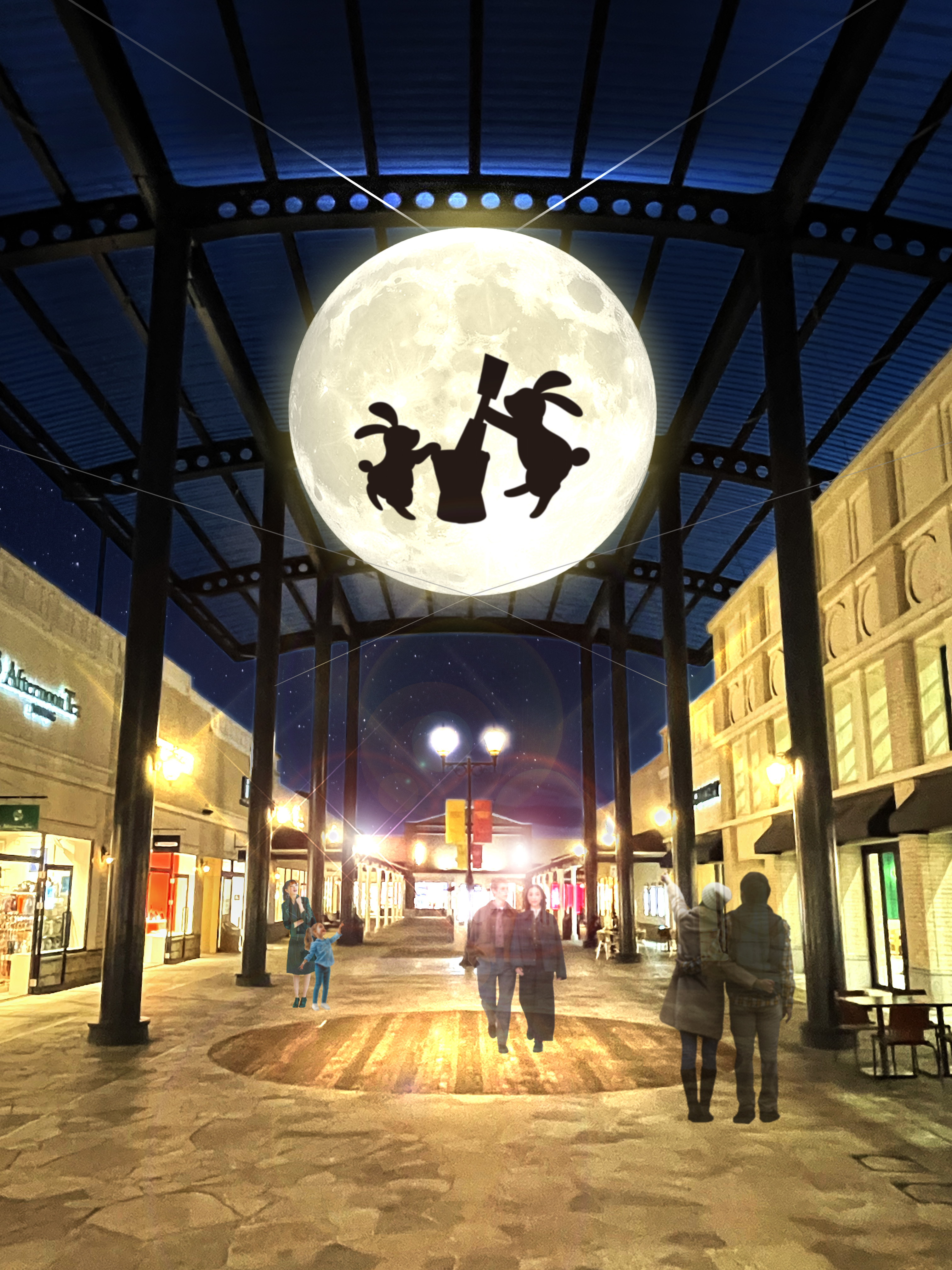 神戸三田アウトレットに直径約5メートルの月の装飾が登場 うさぎとのふれあいやお月見メニューを楽しむ秋の特別イベント「TSUKI NIGHT FES」初開催
