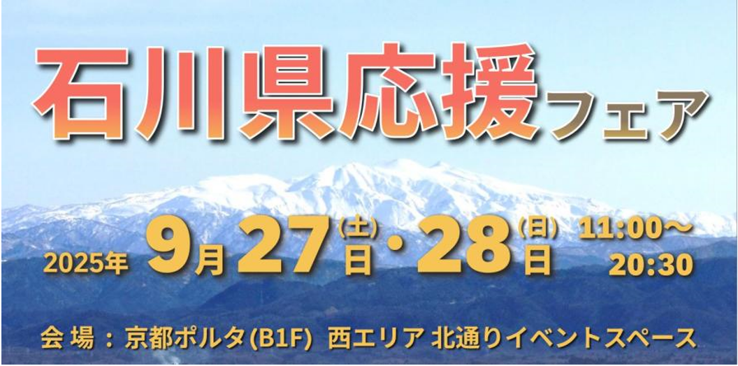 「石川県応援フェア」in京都ポルタ 石川県応援フェアを通じて、応援消費を呼びかけ!(9月27日・28日開催)