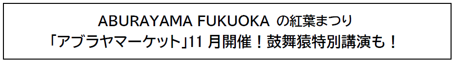 ABURAYAMA FUKUOKA の紅葉まつり「アブラヤマーケット」11月開催!鼓舞猿特別講演も!