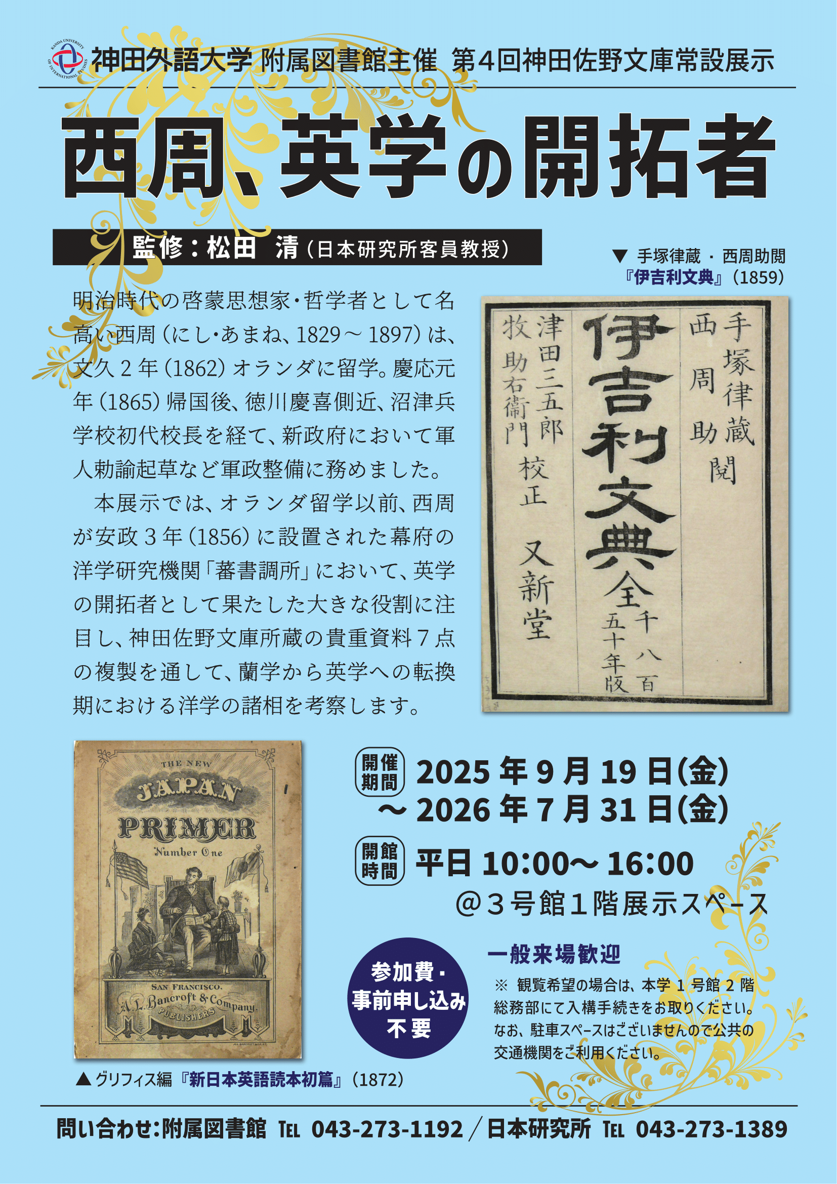 神田佐野文庫常設展「西周、英学の開拓者」 2026年7月31日(金) まで開催中