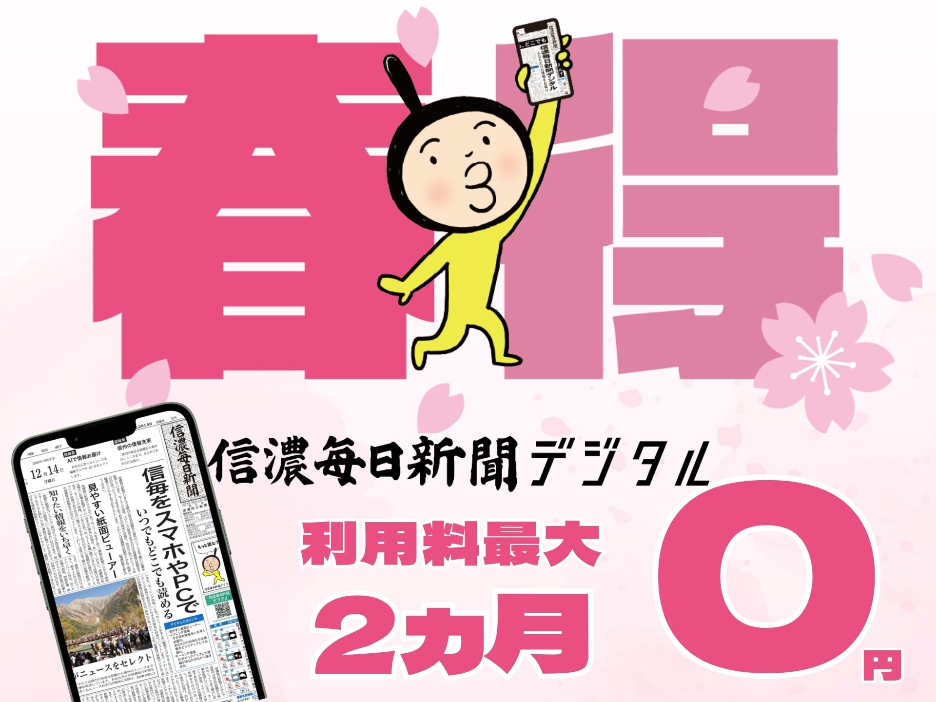 【春得 最大2カ月無料】信濃毎日新聞デジタルで始まる新習慣 ~新規登録キャンペーン~ 高校入試の記事が読める! 人事異動検索サービスが使える!