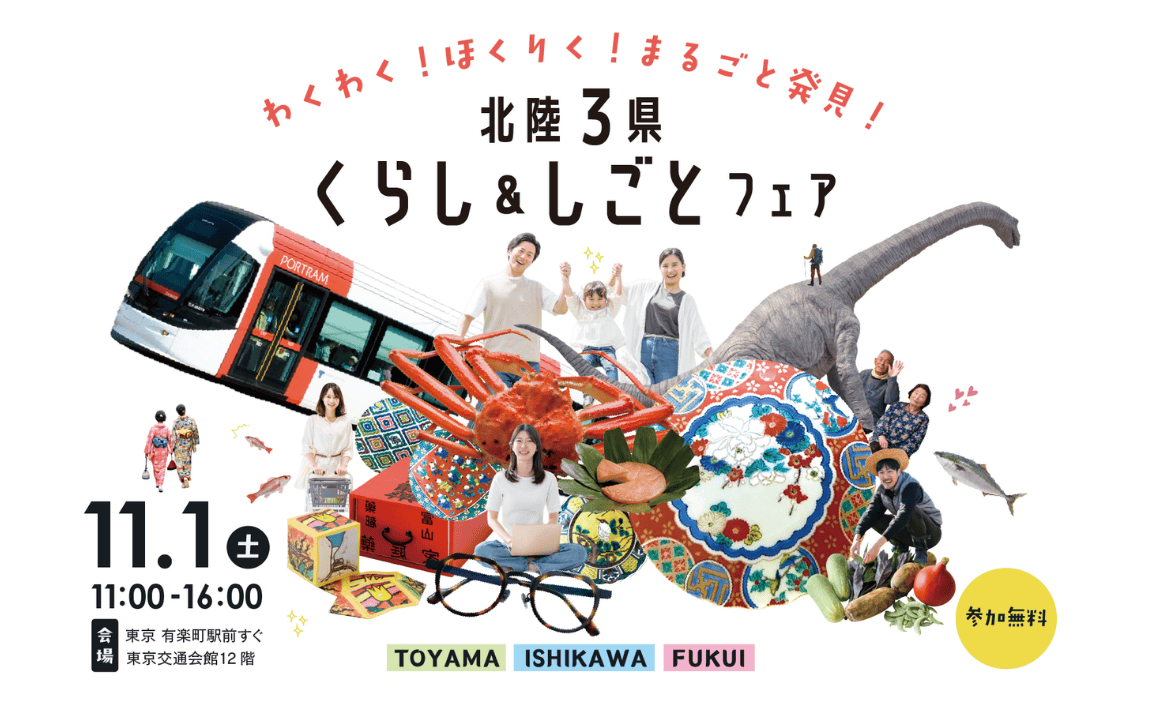 北陸地域3県合同の移住イベント「北陸3県くらし&しごとフェア」を11月1日、有楽町の東京交通会館にて開催します。