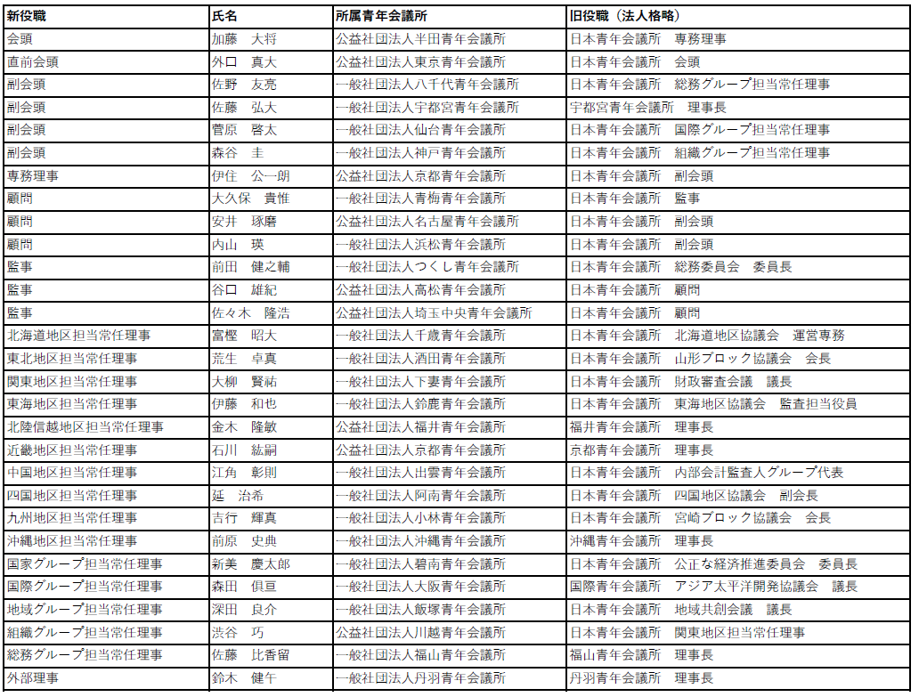公益社団法人日本青年会議所2026年度理事・役員決定のお知らせ