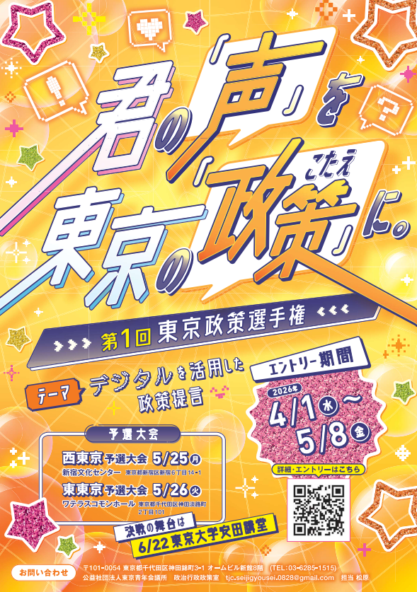 【参加無料】【2026年5月25日、26日】東京青年会議所、若者の政治参画を促す「第1回東京政策選手権」を開催