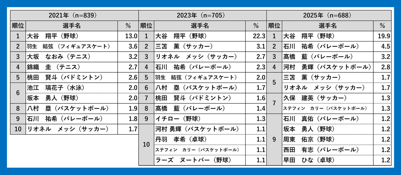 【青少年の好きなスポーツ選手2025】大谷翔平が4回連続の1位!