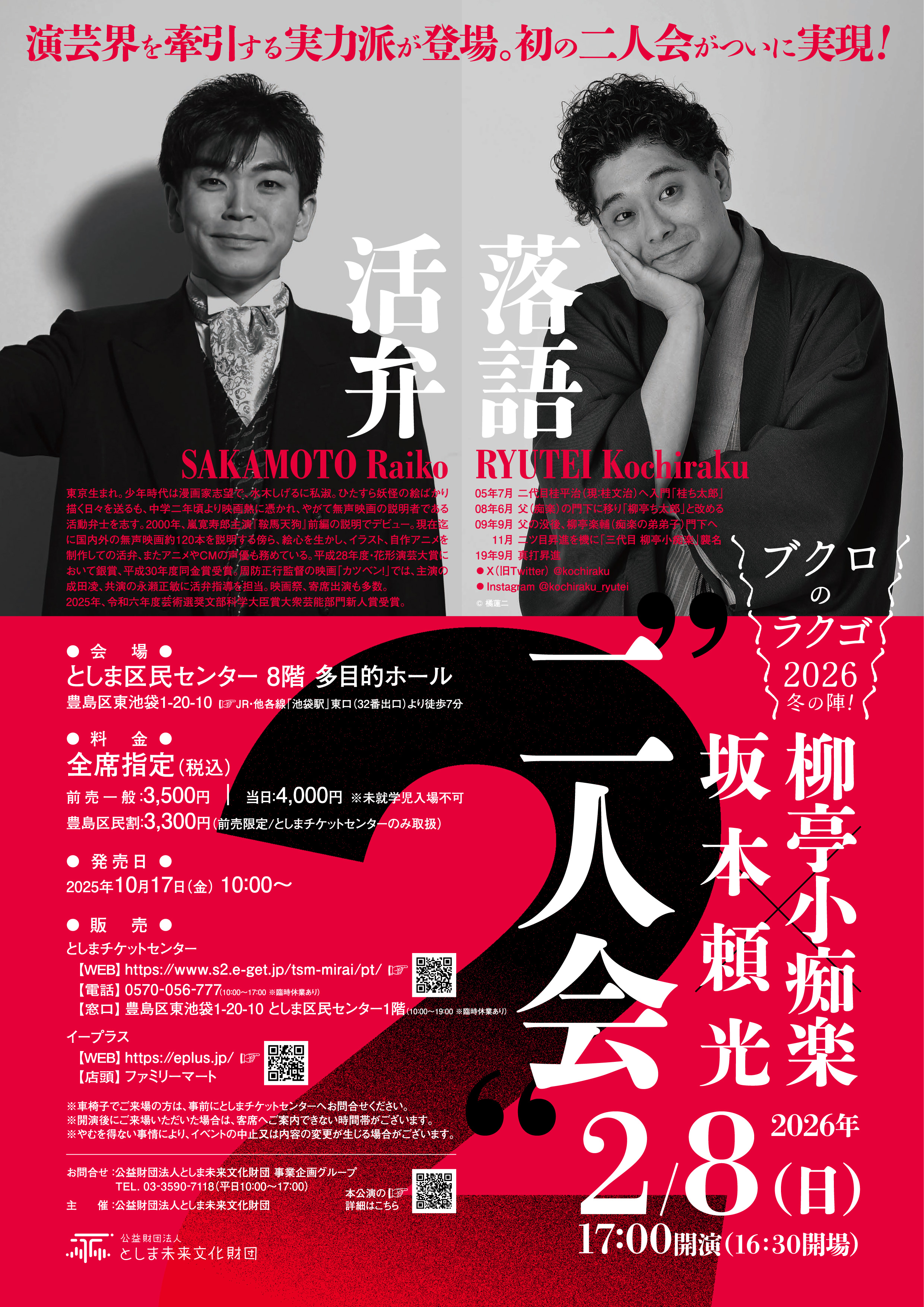 ブクロのラクゴ2026冬の陣!「柳亭小痴楽×坂本頼光 二人会」