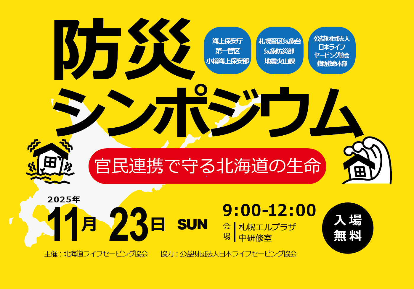【11/23(日)】<一般参加可能>「防災シンポジウム ~官民連携で守る北海道の生命(いのち)~」を北海道ライフセービング協会が開催
