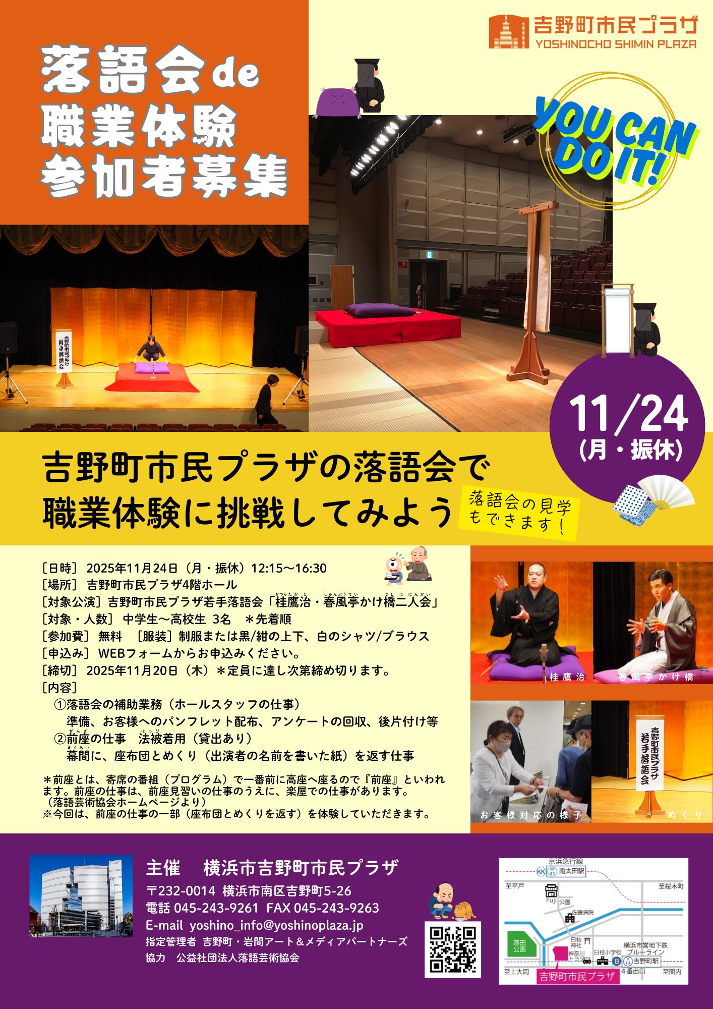 【吉野町市民プラザ】「落語会de職業体験」参加者募集