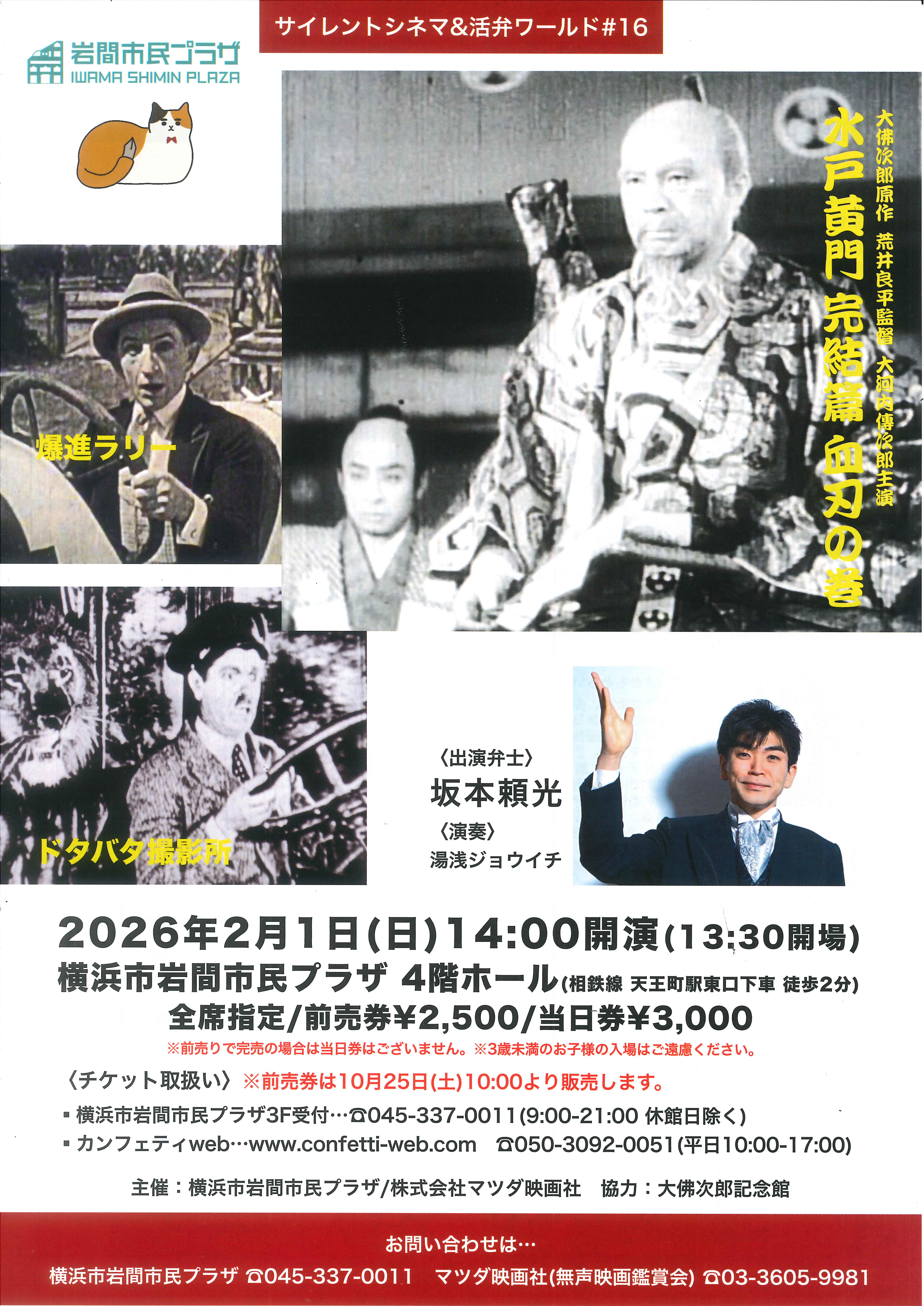 【岩間市民プラザ】サイレントシネマ&活弁ワールド#16「水戸黄門 完結篇 血刃の巻」「爆進ラリー」「ドタバタ撮影所」