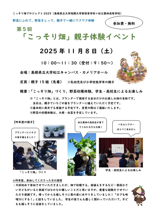 「こっそり畑」親子体験イベントを11月8日(土)に開催します
