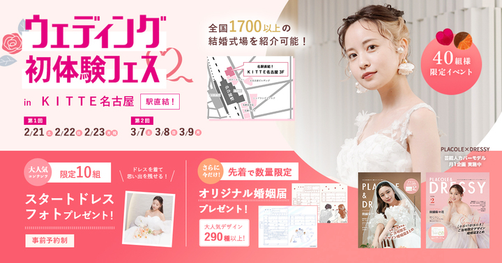 【婚姻届プレゼント】2/21(土)22(日)23(祝月)結婚準備を楽しく進めるウェディング初体験フェス開催決定 in DRESSY ROOM NAGOYA(JR名古屋駅直結)