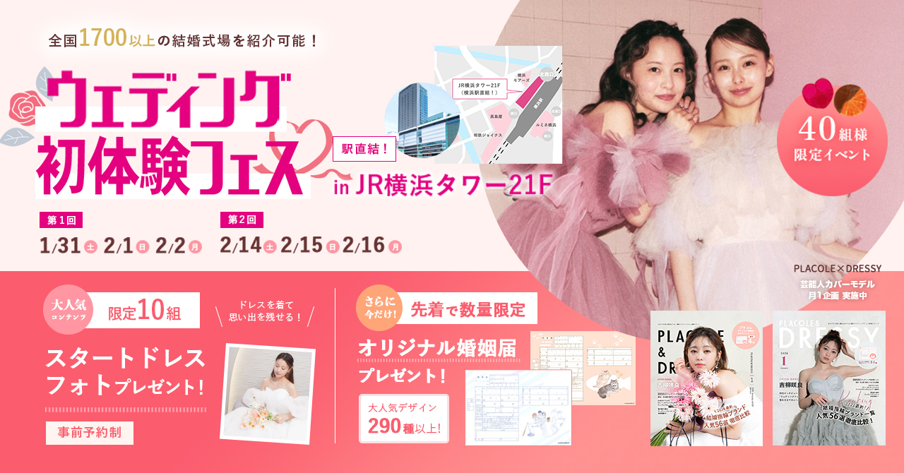 【全国の対象カフェで使えるゴールドカードプレゼント!】1/31(土)~2/2(月)結婚準備を楽しく進めるウェディング初体験フェス開催決定 in DRESSY ROOM YOKOHAMA(横浜駅直結)