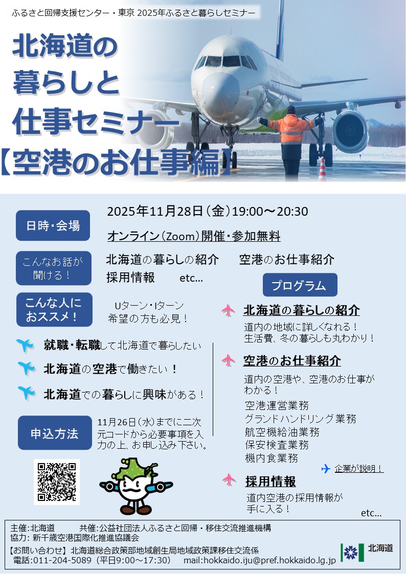 北海道の暮らしと仕事セミナー 【空港のお仕事編】を開催します