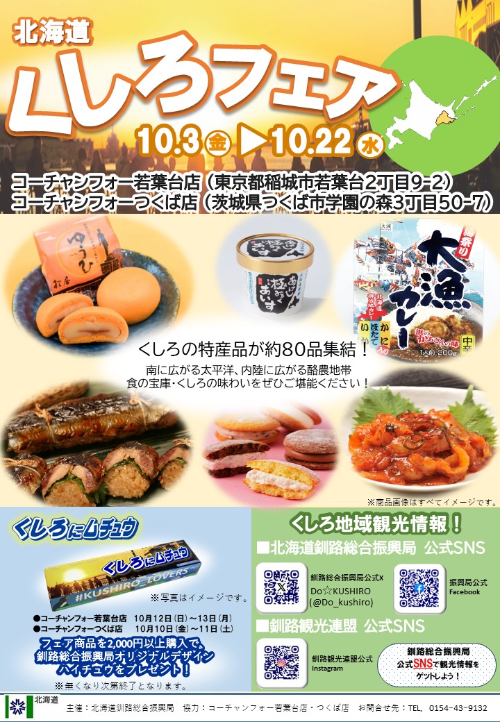 「北海道くしろフェア」(コーチャンフォー若葉台店、コーチャンフォーつくば店)10月3日より20日間開催!