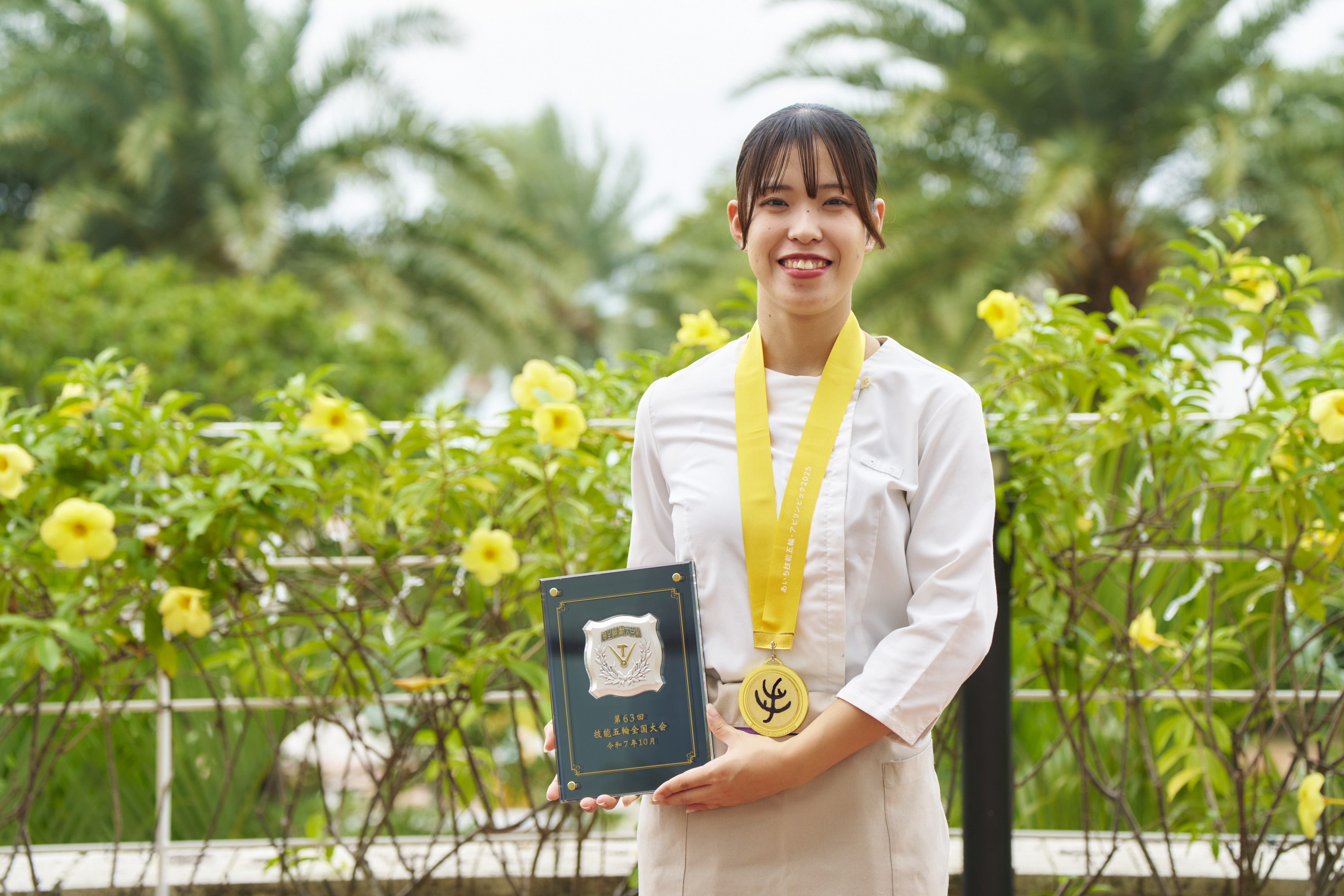 【ヒルトン沖縄北谷リゾート】料理飲料部 山城 彩夏(やましろ さな)第63回技能五輪全国大会のレストランサービス職種で金賞と厚生労働大臣賞を受賞