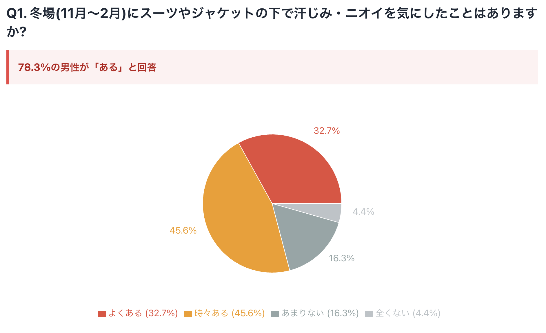働く男性の78.3%が"冬のオフィスで汗じみ・ニオイを気にした"と回答