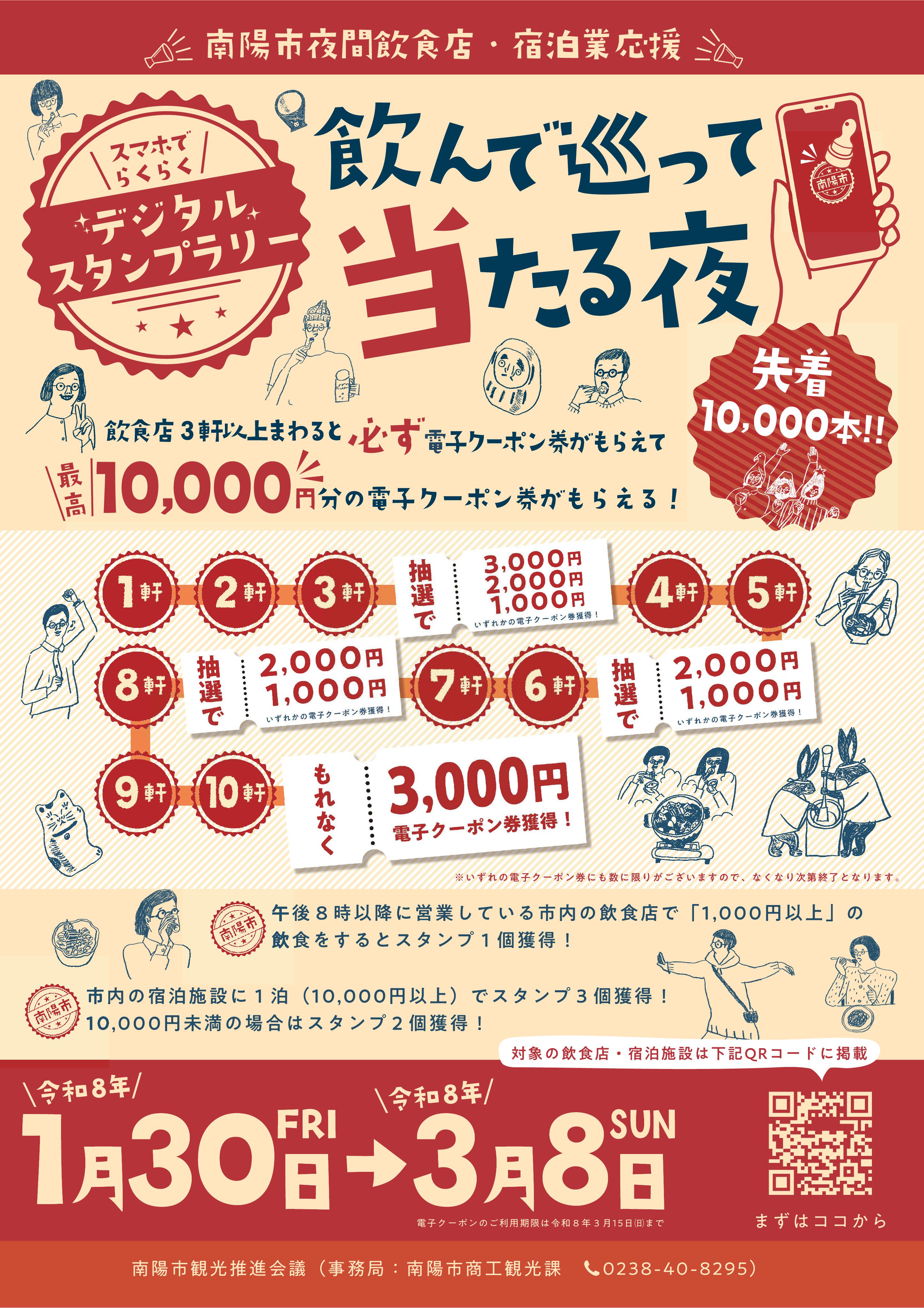 「飲んで、巡って、当たる夜!」南陽市の夜を楽しもう!デジタルスタンプラリーで市内飲食店と宿泊施設を応援