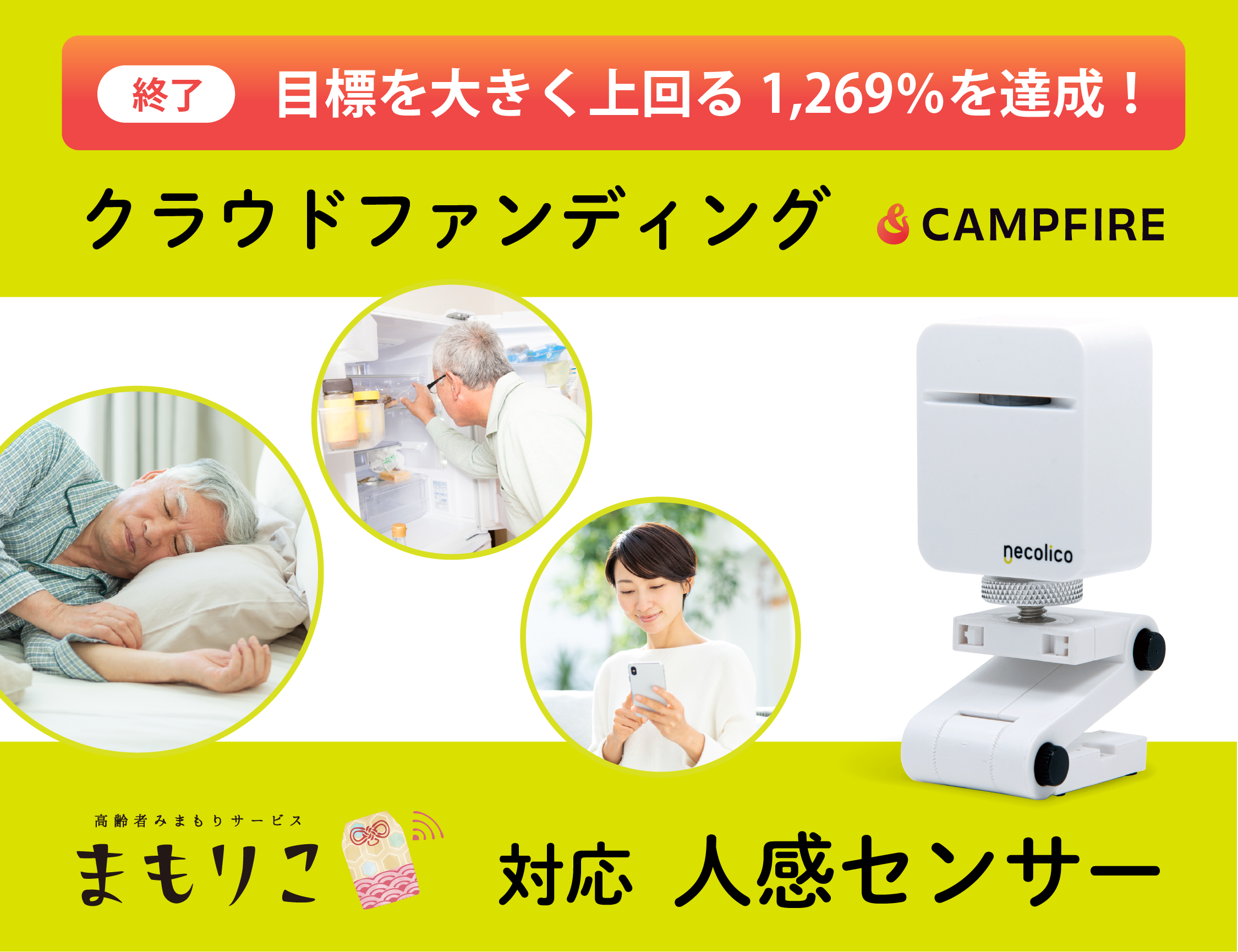 高齢者みまもりサービス「まもりこ」が新たに「人感センサー」を発表。 2月6日よりCAMPFIREにて先行販売。