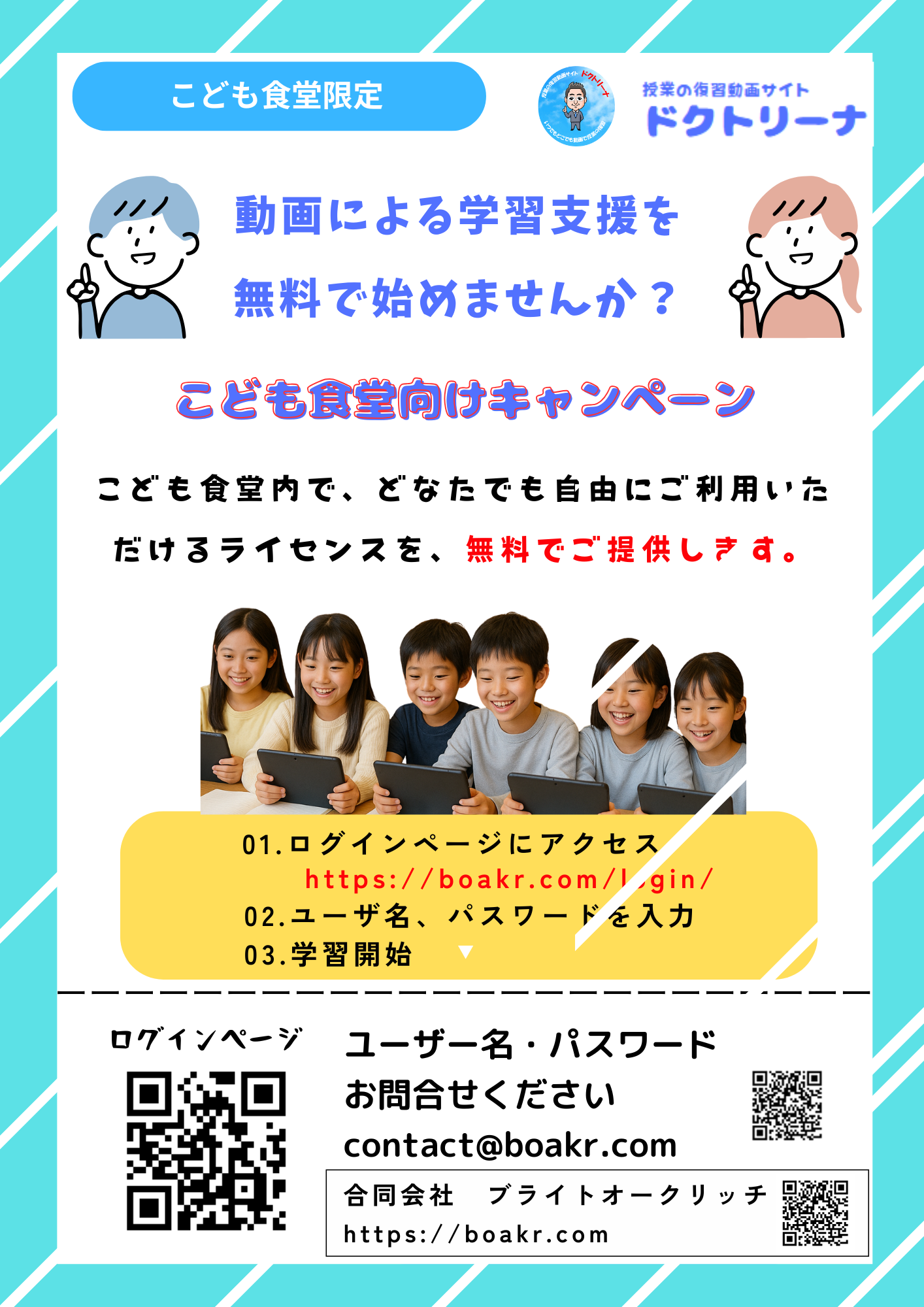 子ども食堂に「学びの場」を。~学習動画サービス「ドクトリーナ」、施設内無償ライセンスの提供を開始~