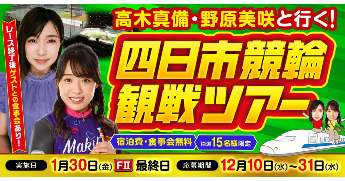 【1月イベント情報】高木真備&野原美咲 元選手と一緒に観戦!一緒に飲める食事会も!「四日市競輪現地観戦イベント」