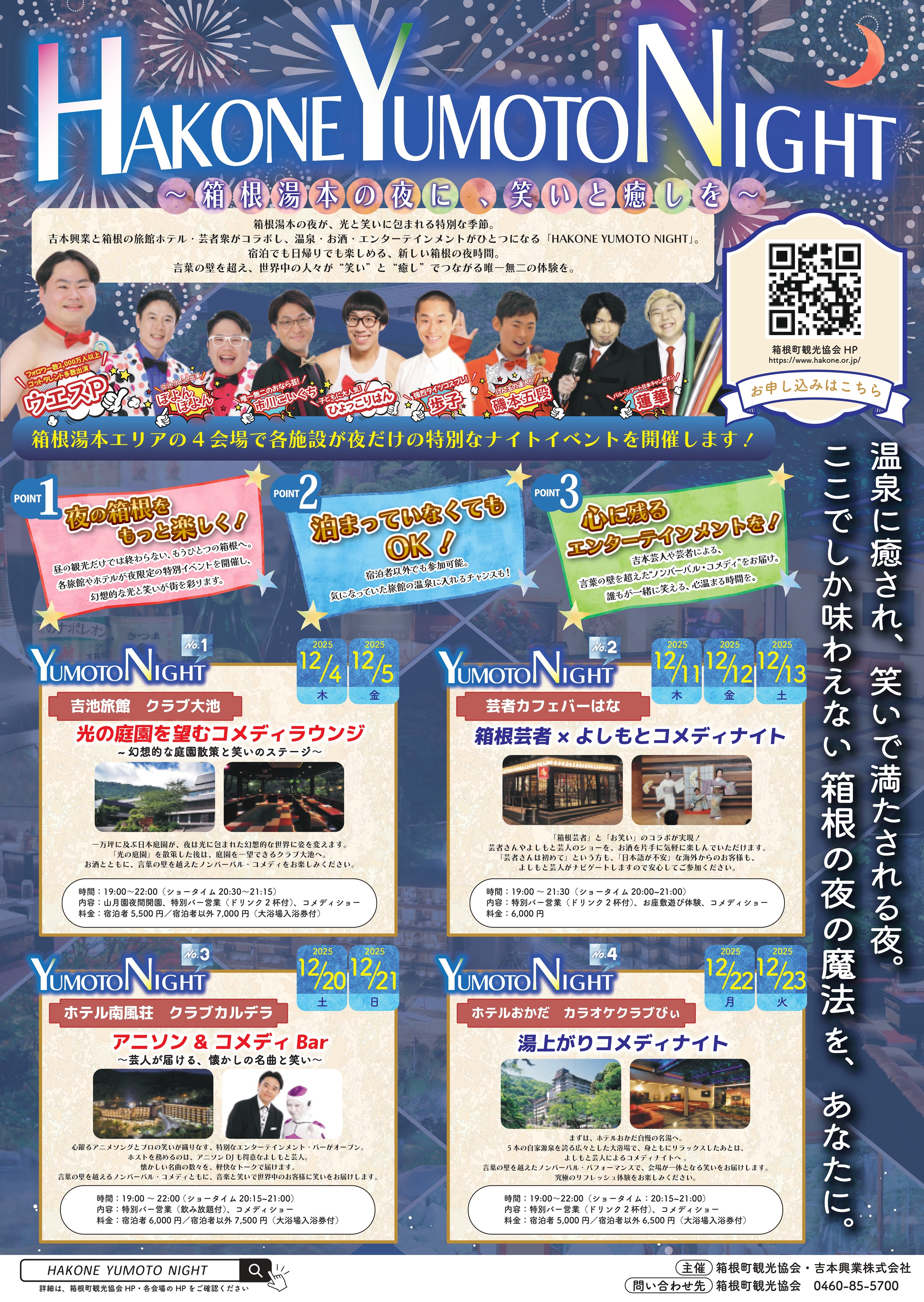 ウエスP他、総勢17名の芸人が“箱根の夜”を盛り上げるエンターテインメント『HAKONE YUMOTO NIGHT』