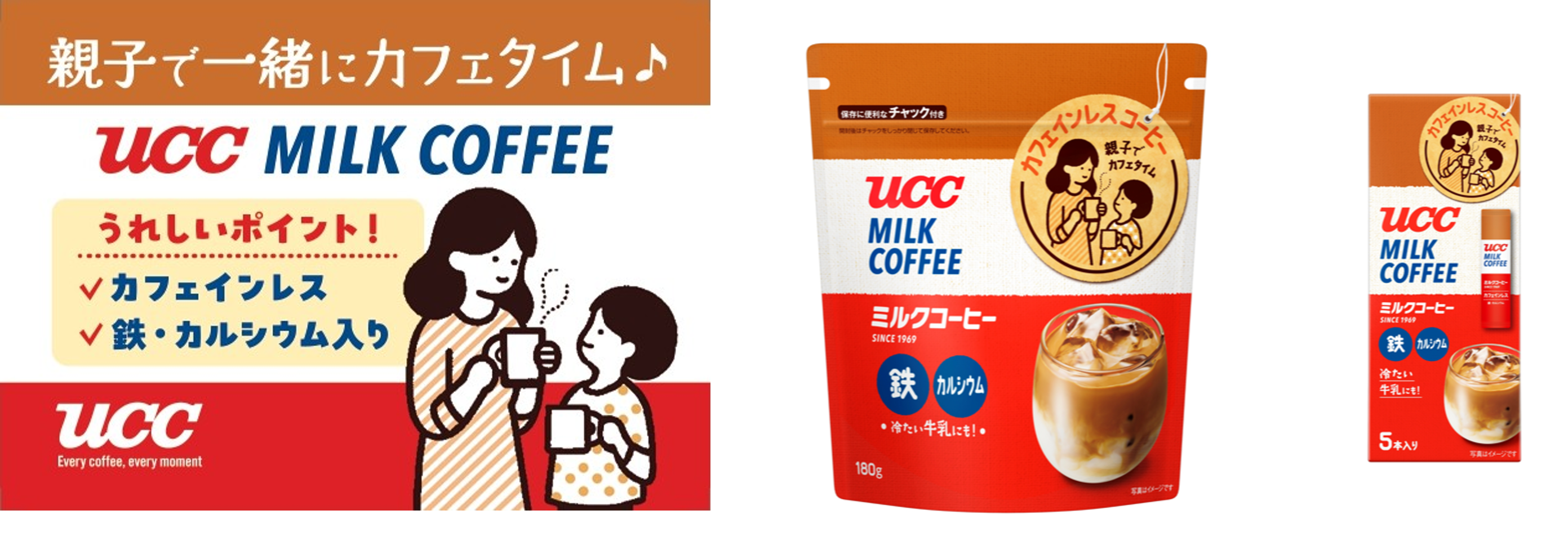 親子で楽しめるカフェインレスが登場!コーヒーデビューにも!『UCCミルクコーヒー 袋180g/スティック5P』を3月2日新発売