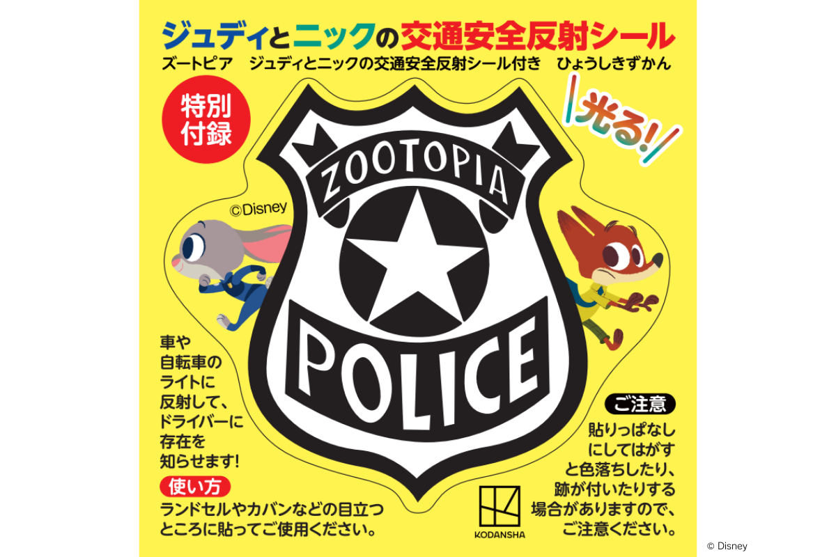【特別付録】ディズニー映画『ズートピア』のオリジナルシールがついてくる! 親子で学べる『ズートピア 特別付録ジュディとニックの交通安全反射シール付き ひょうしきずかん』が3月発売!